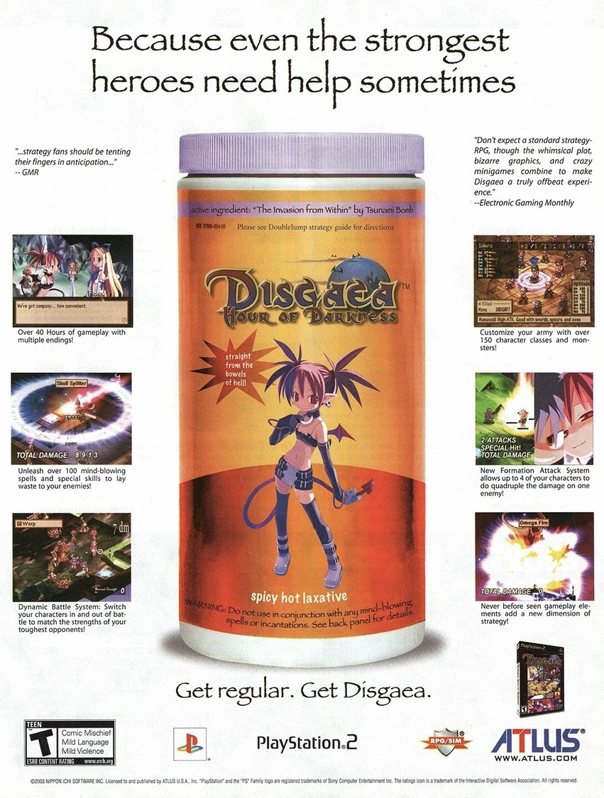 disgaea 1 - i beat disgaea 2 in 5th grade and never played another one until now. i remember this American magazine ad for disgaea in either tips & tricks or shonen jump