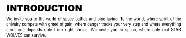 I’ve finally had an opportunity to sit down and play a videogame. So how many of you think this russian game I’m about to play is going to live up to the hype in the manual? Frankly it seems irresponsible to describe your game as “space battles and pipe laying” when we all very well know there is not going to be nearly as much pipe laying as that implies.