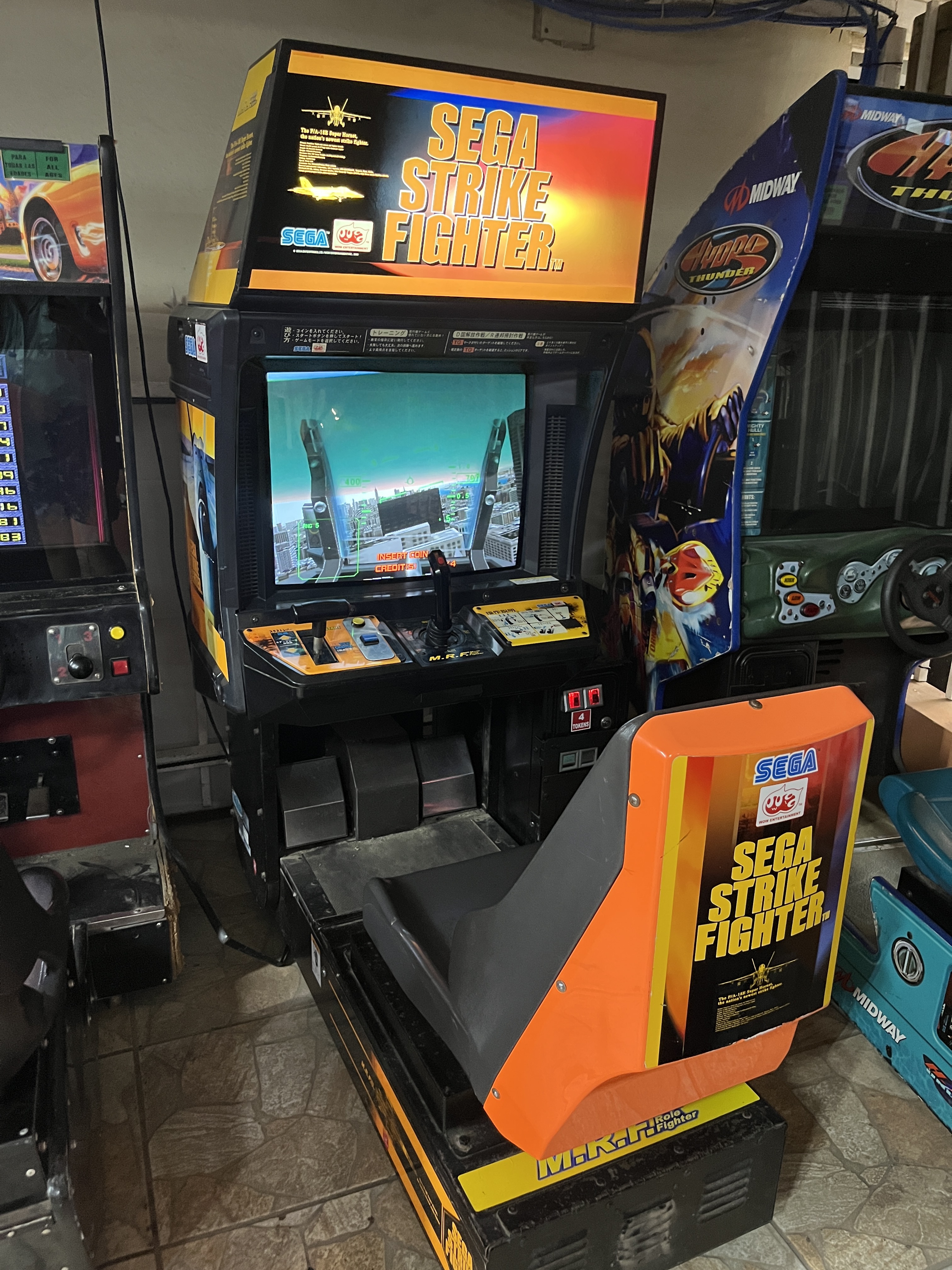Japan import sega strike fighter. But the rom was in English. The monitor was in absolutely beautiful condition. But unfortunately the stick was broken. I still felt cool finding it.