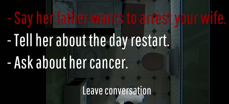 How the player character immediately believes Wifey may be a murderer. I’m pretty sure I’d immediately roll over if my partner were accused of any sort of crime so it’s nice to see more coward representation in video games.