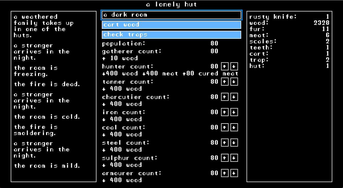 Two other text-based games with a similar premise I’d recommend are Caves of Qud and A Dark Room, in case you haven’t played them yet.