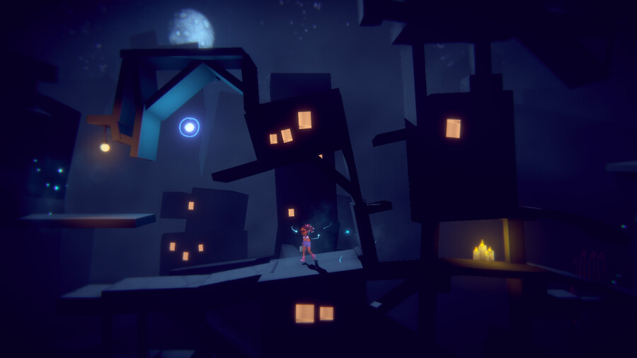 Left analog stick controls the little girl while the right one controls the flying blue orb so yes, it is technically another one of those “control two different characters at the same time” games. Fortunately it very rarely requires you to move both at the same time in a coordinated way which prevents it from being maddening. The little girl cannot jump, so the only way she can get over obstacles or gaps is by pressing a button which causes the blue orb to basically shoot a beam at the girl which pulls her a bit towards it but is largely used as a swing. The gameplay in general is setting the right point for the blue orb before using it to swing or pull the girl through a set of obstacles, different kinds of obstacles are added the further in you get, you get the basic flow.