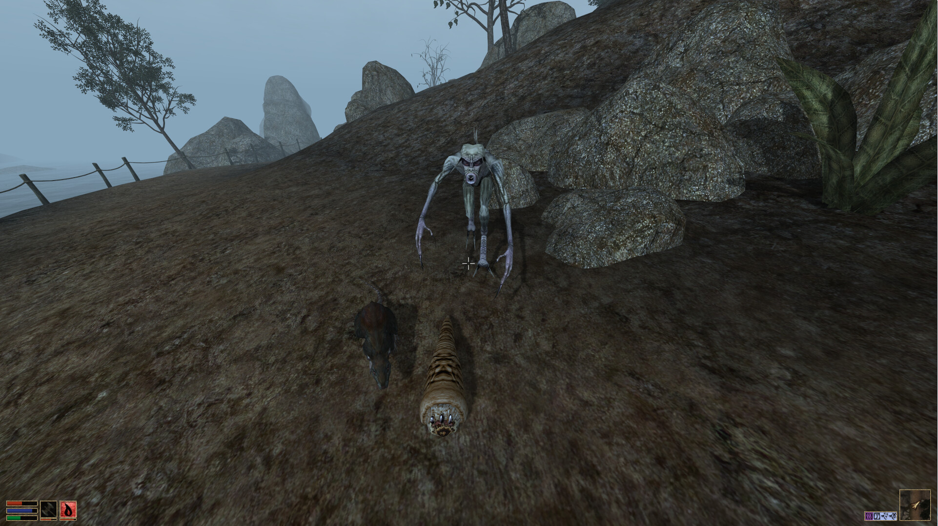 ive been playing openMW recently and having a blast, heres me being ambushed by a rat a kwama forager and a hunger at the same time