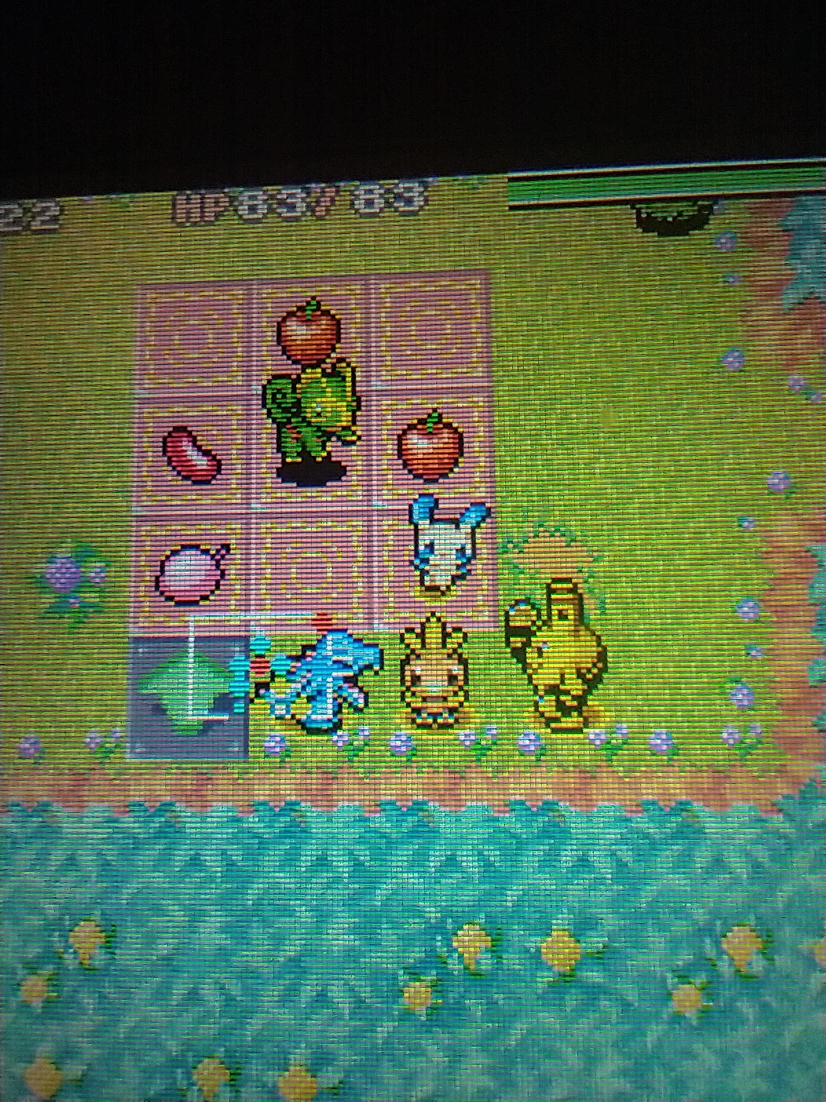 in a fit of shiren froth i picked up pokemon mystery dungeon explorers of darkness, which is of the gen that people who talk about these games (Extremely excitable youtubers w pokemon fanchar avatars) seem to swoon over the most. its no shiren - its more about snaking your team around and managing move uses than item use - but its surprisingly charming to play interspersed w shiren postgame. i thought i was totally burnt on pokemon, could never play another one, but give them scarves and let them tell me about their hopes dreams and fears and i guess i can deal with it. the art’s p cute too, and the personality quiz set-up is gr8
