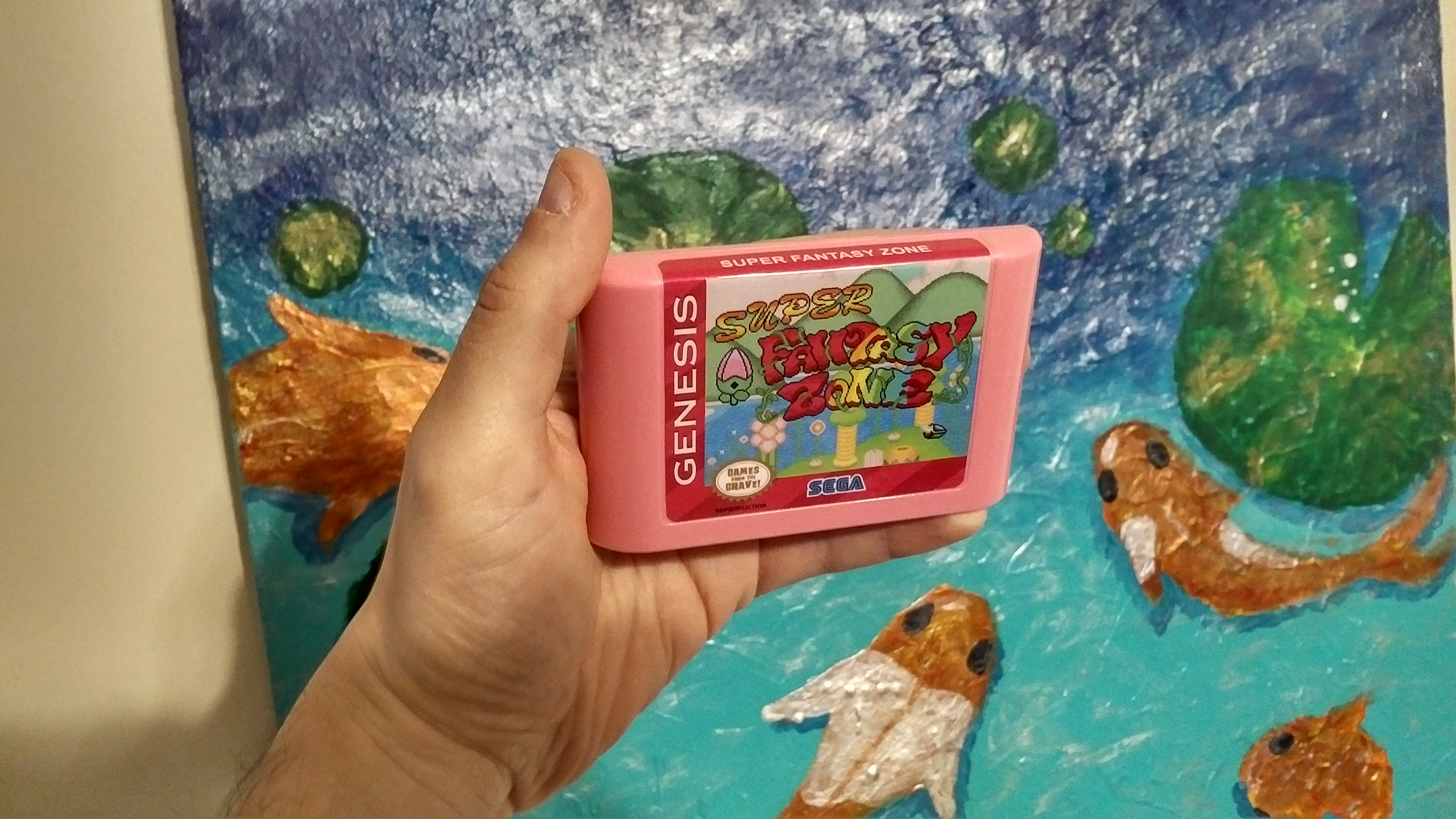 Been playing a lot Of Super Fantasy Zone on Genesis with the clicky stick. Its so good, as are all the other Fantasy Zones Iāve played. But this one being 16-bit is just a little more plush. Got me a reproduction from a dude on facebook that came in a nice pink cart.