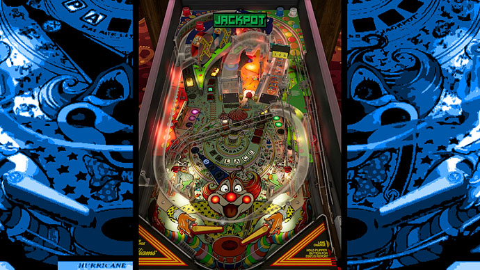 On right flipper: catch and pass to left flipper; if can’t catch, shoot Juggler (mid-left) if lit, otherwise left lane (Ferris wheels)