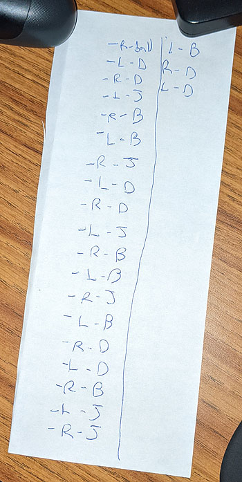 (wasn’t clear how to hit them without dying at first; eventually through trial and error found you can spin-dash them only when they’re dashing at you, not when they’re at rest–'cause why make sense when you can just kill the player and make them try again : PPP; so the sequence I wrote down of which side they attack from and what their attack is goes (B = ball aka spin dash; D = dash, J = jump):