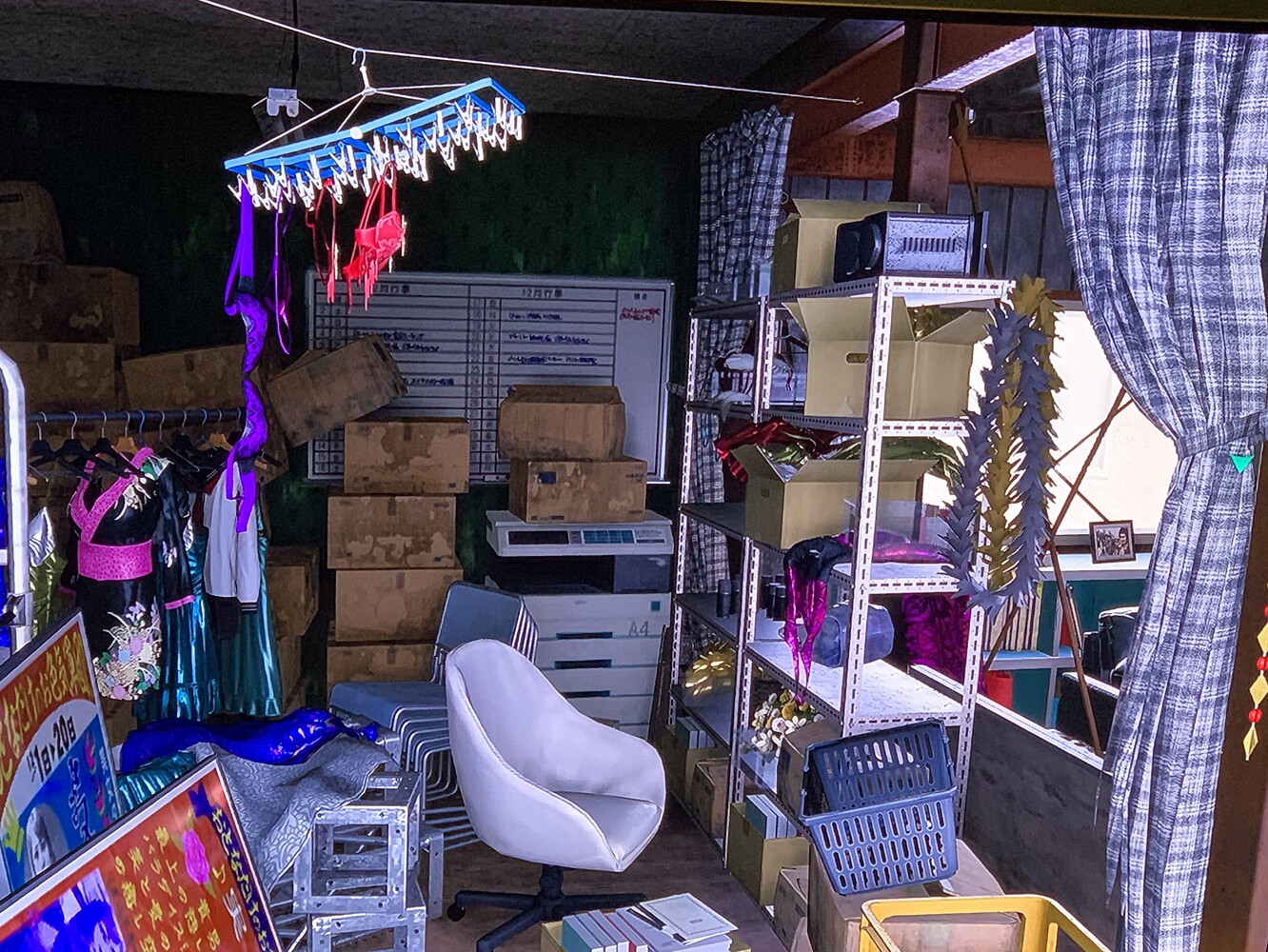 - Whole place is messy, random stuff on the floor everywhere, boxes thrown around on top of each other with no care