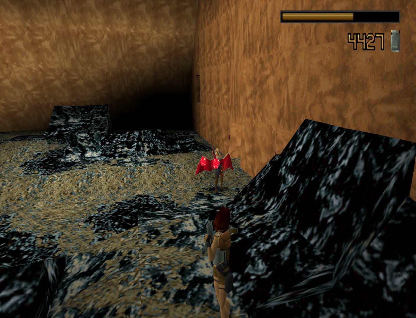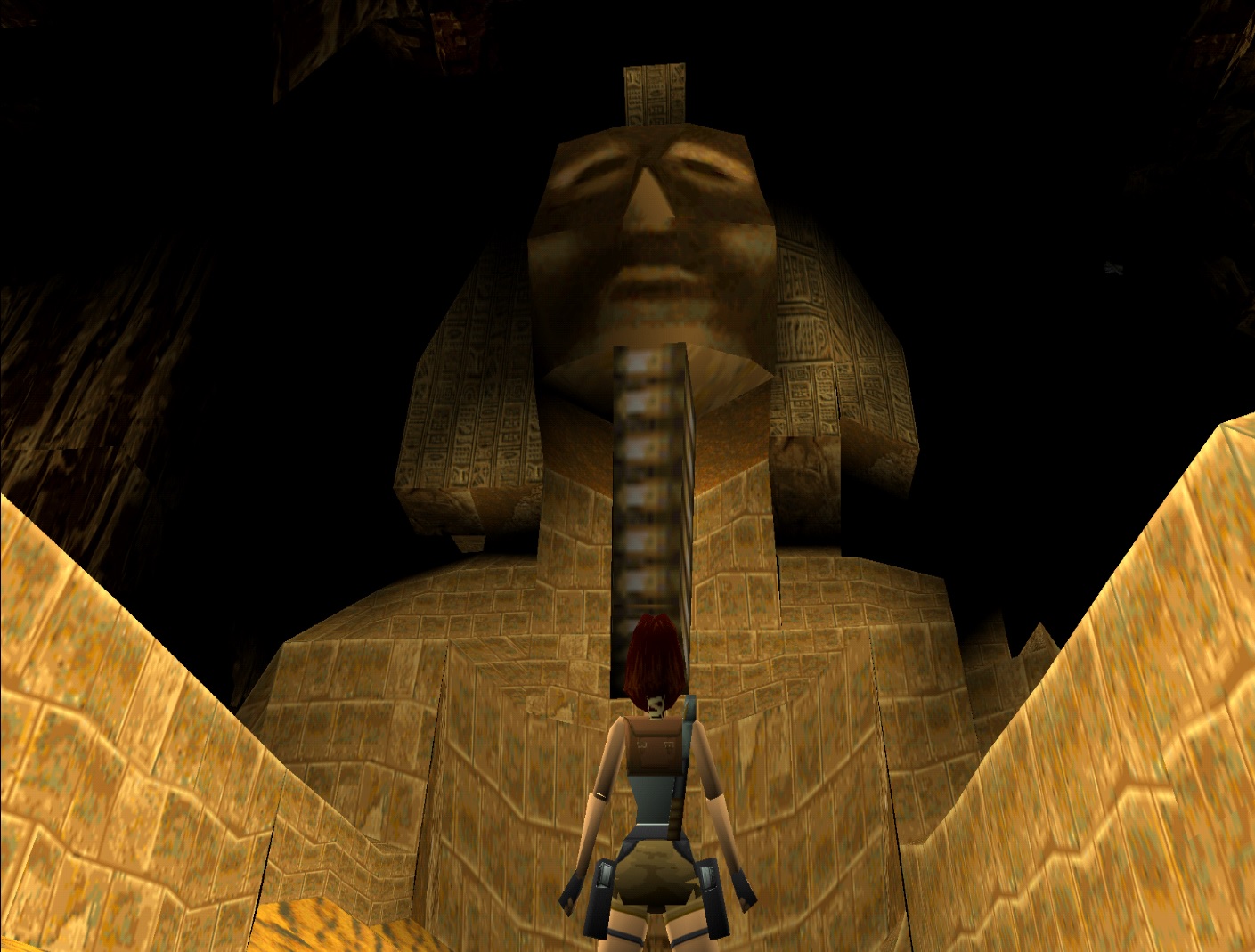 the last Egypt level is a comparatively more straightforward and focuses around this very impressively scaled Sphinx that looms over everything in a dark underground cavern. this really uses the black fog that shrouds everything that’s too far away to its advantage to create a really nice effect. apparently it was also the only level designed by the project director, Toby Gard. there’s not much to say about this level outside the main area, but it definitely didn’t feel like it outstayed its welcome like some other levels.