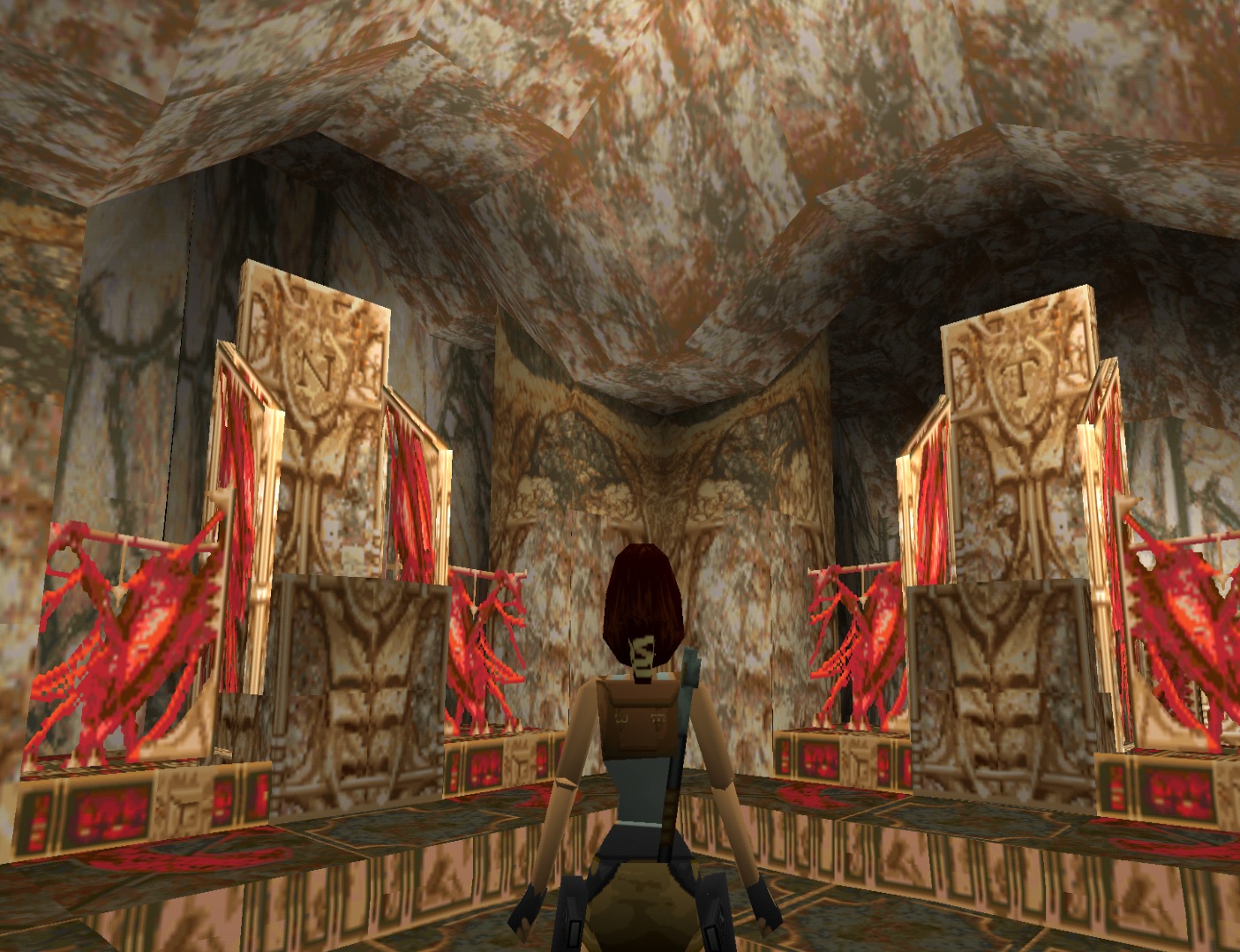 so what do i think of Tomb Raider 1? it’s hard to rank, really. for a game that came out basically at the same time as Mario 64, the scope and scale of everything is really impressive. it’s clearly easy to see why this was a groundbreaking game, and not just something that’s “of its time” or whatever. the variety of environments also surprised me. i kind of associate Tomb Raider with being mostly caves. not only did a lot of levels have different kinds of approaches and things they expected you to do, but they often felt of a piece with the others immediately around them. especially as the game went on, it felt like the thematic/narrative stuff tying them together became a bit stronger and more focused.