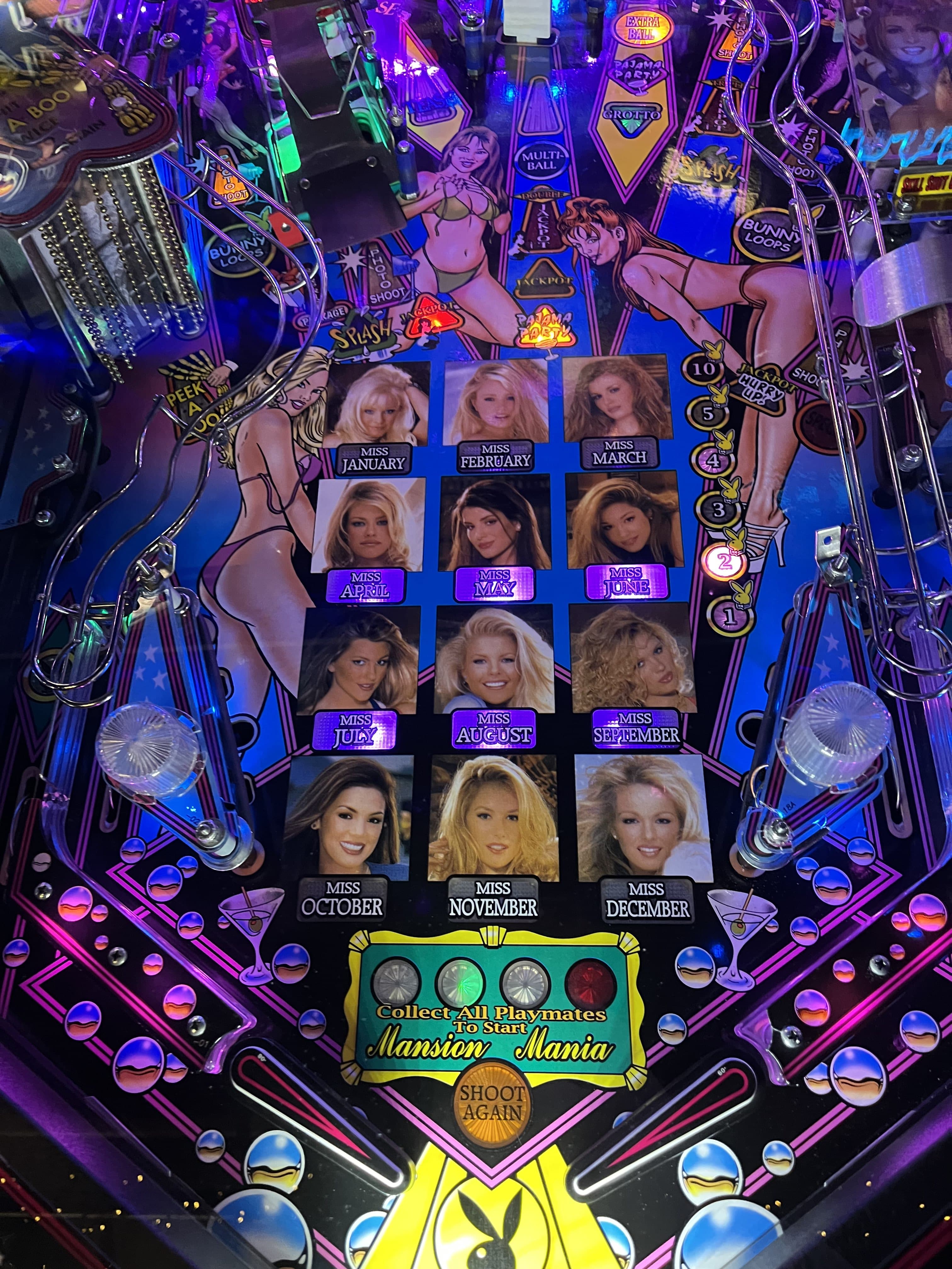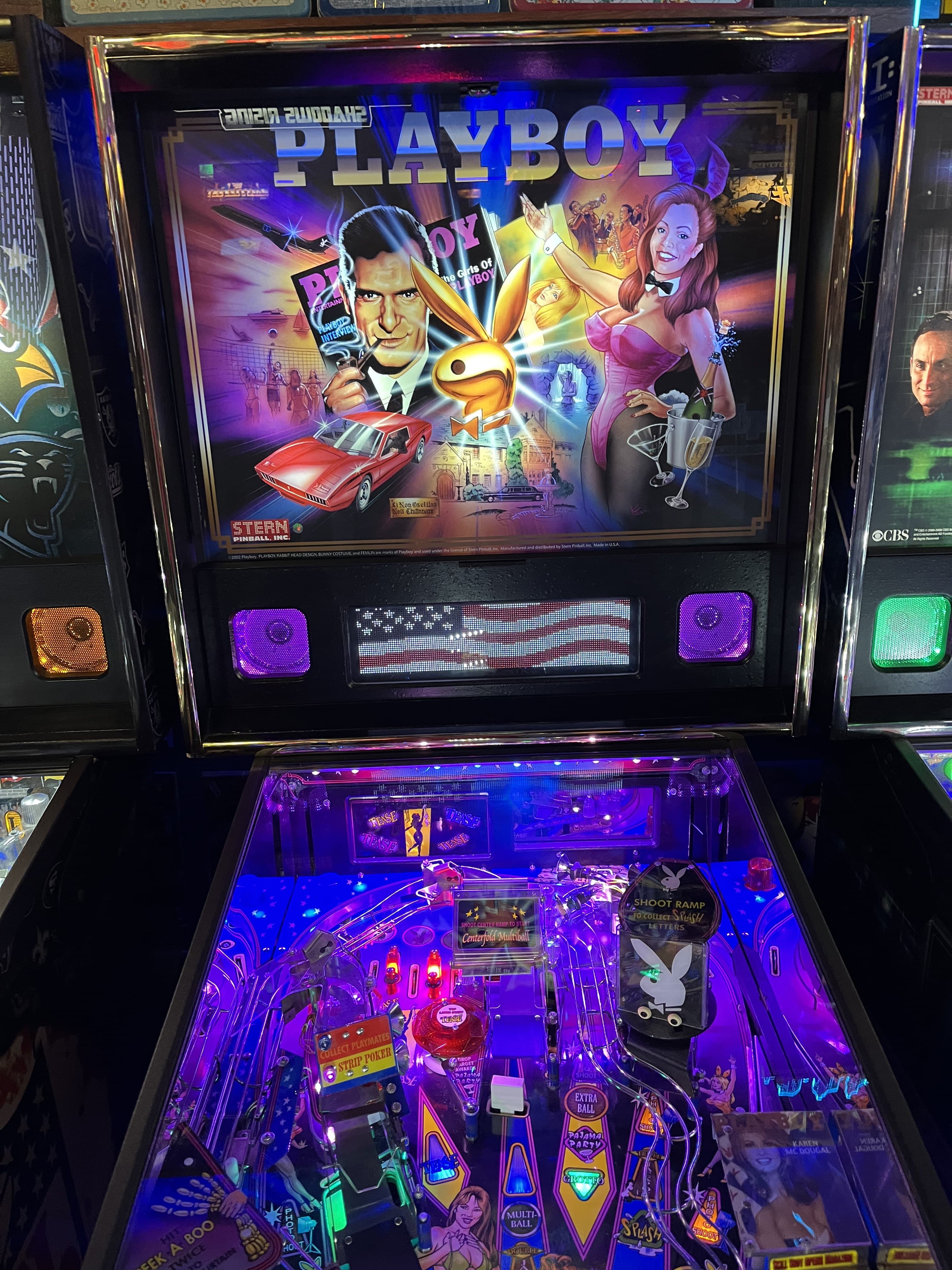 Playboy pinball machine with a little beaded draped curtain for one of the shoot targets. Like all playboy stuff, it’s so horny it stops being horny and just starts feeling uncomfortable. Apparently one of the inserts had several different girls available to see which one made you the most money from the dudes playing this.