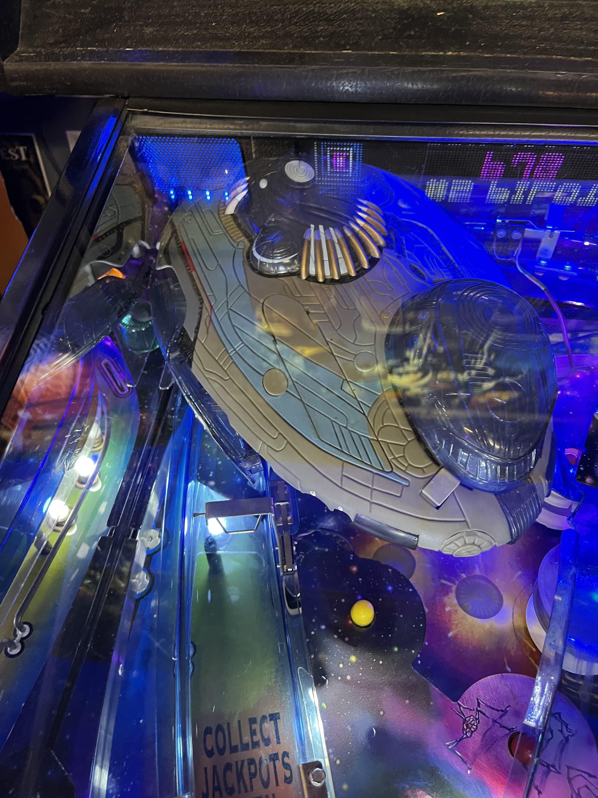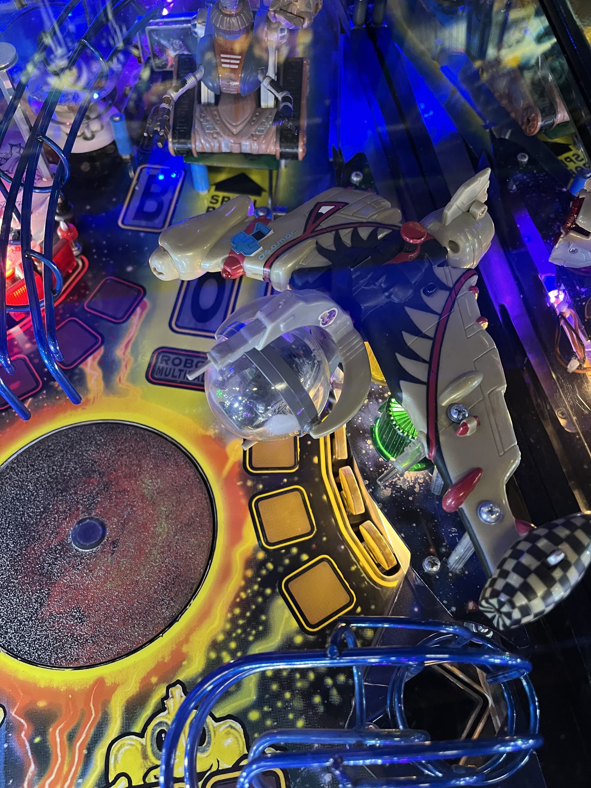 I didn’t actually get a shot of the backglass for this machine because I was too distracted by it using actual toys in the decoration. I know that because I had that Juipiter 2 and Robot toy when I was a kid. All the sega machines from the late 90s were like this, they featured stuff that I’m 90% sure were just…toys from the era. I desperately want to know why they did that but have no anwers.