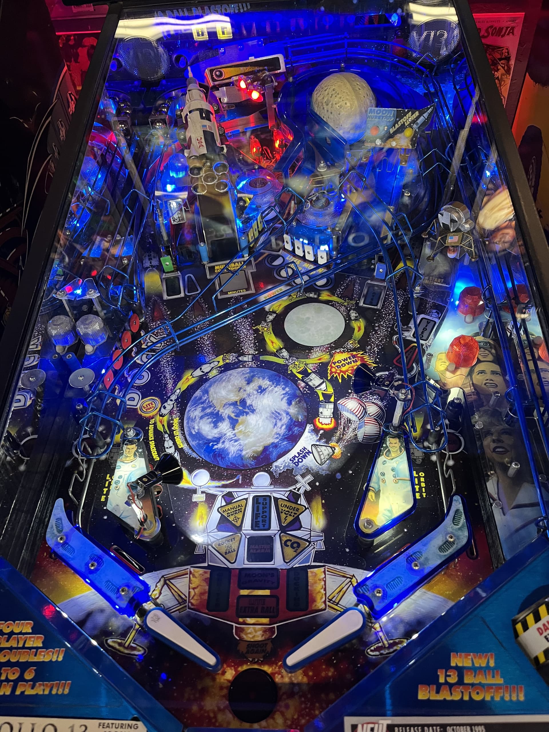 Even the little space ship in the Apollo 13 board looks like a toy. Also…why is there an Apollo 13 pinball table? Something just feels weird about that. But the theming works, it had a shooter that’s activated by twisting a rocket ignition switch.