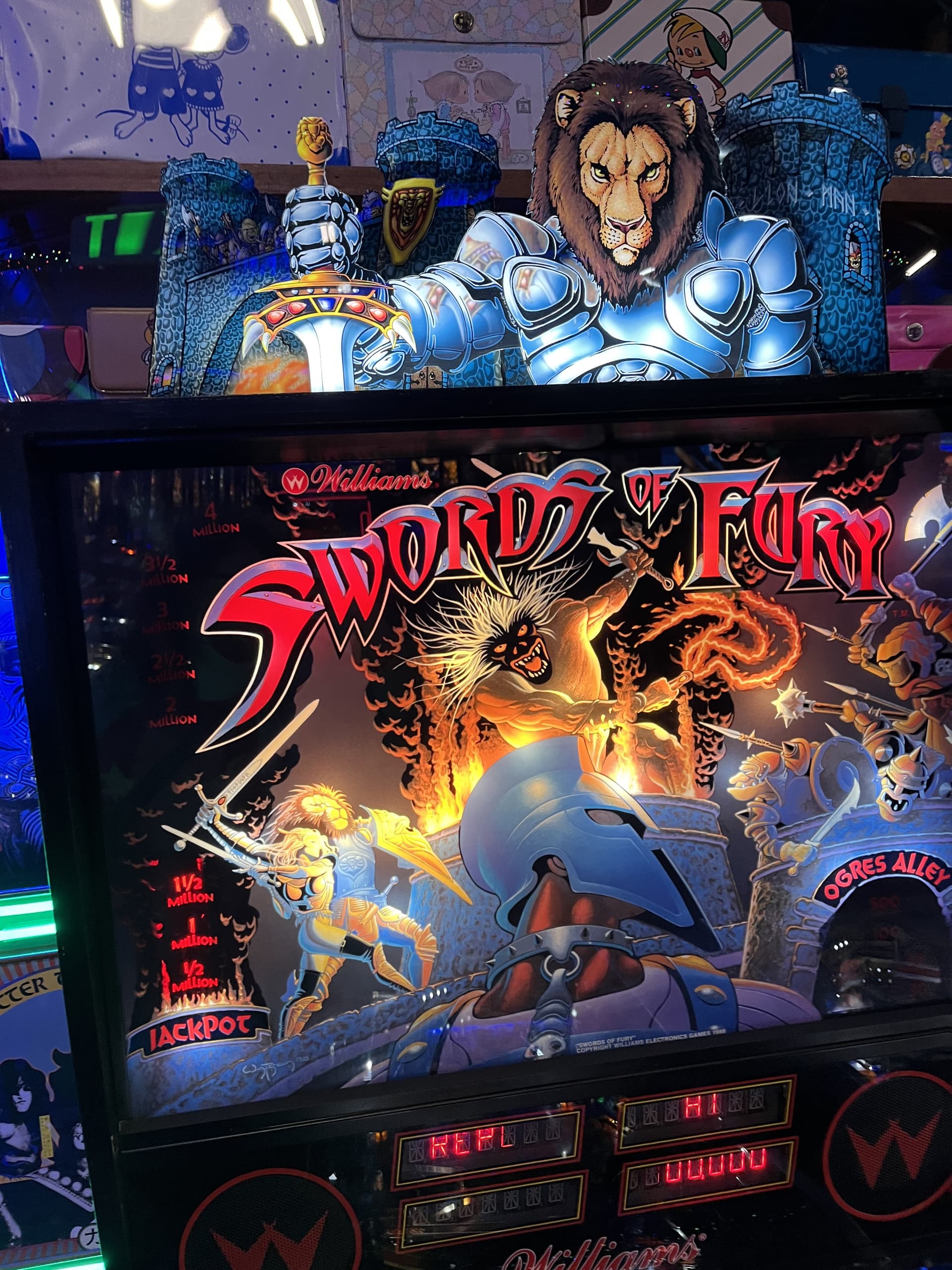 Did I misread the pinball machine with the lion man on it as Sword of Furry? …yes.