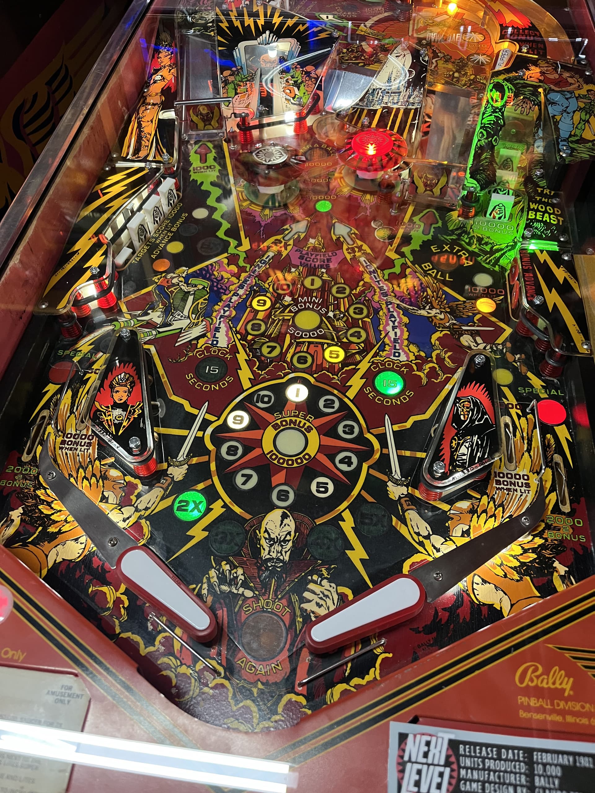I don’t think there has ever been a movie more suited to being a pinball machine than Flash Gordon. it’s a pretty basic table though, kind of in a weird spot of being new enough it’s not compellingly low tech but also too old to have a bunch of unhinged mechanical bits. Still, aesthetically incredible.