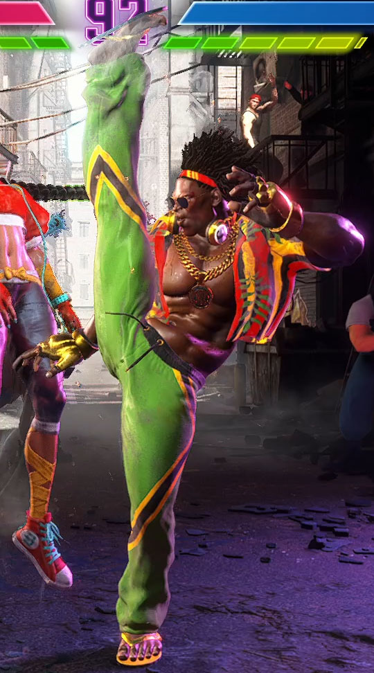 Primo Capcom illustrator Shinkiro did the art for Dee Jay’s Story mode. = ooo It’s his sort of comic-book coloring style, and he gives Dee Jay a very generic face, so he looks odd with his glasses off,