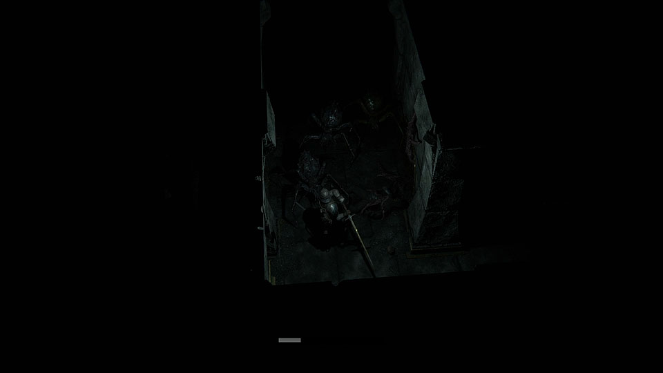 Dark Souls-style combat, a Diablo feel to the dungeon, high camera, and monster placement, & roguelike permadeath & procedural monster, item, & certain dungeon element placement–but I think the main dungeon architecture stays the same from run to run.