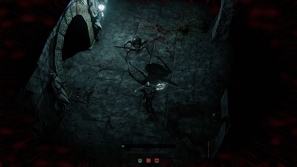 Hits can inflict debilitating effects that really pile up; one dose of spider venom can reduce your speed 30%, leaving you at the monsters’ mercy. One bad trap snap while facing an enemy can equal curtains, too. Retreat doesn’t feel like much of an option but maybe is doable to some degree? Maybe I didn’t run far enough, or you need a door you can close? I got easily disoriented in the dim sameness. You get shiny gold coins specifically to use as breadcrumbs and I didn’t try that.