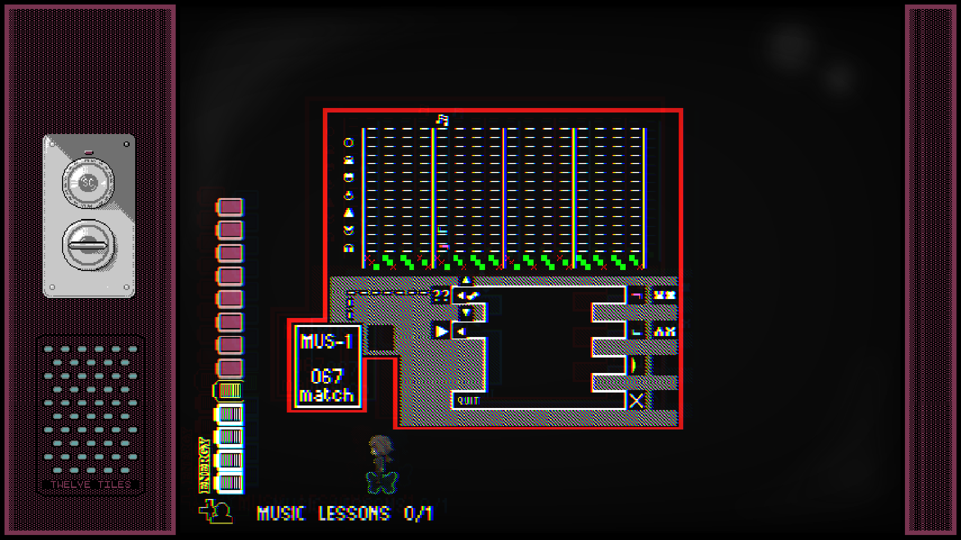 As I can probably say some things that are technically spoilery but without context don’t mean much, in terms of good breaks I figured out a pattern earlyish and was rewarded with one of four colored keys I believe is necessary for what is probably the third very hidden “true” ending, I convinced someone to cohabitate with me but am unsure how to craft a hand-waving response needed to finish our next conversation, I found what appears to be two distinct musical puzzles which are always a pain (one seems to have system in place to brute force through at least), my virtual pet cat no longer hates me, and I am currently staring down the prospect of having to translate an entire alphabet to make progress someplace. I also have a good half-dozen hint images I can’t make heads or tails of.