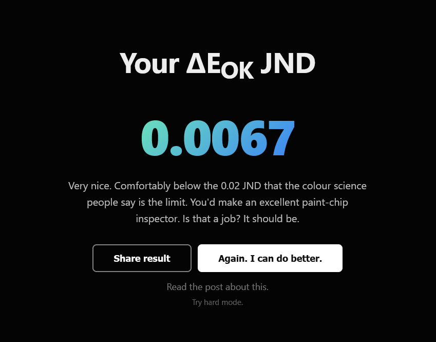 Can you beat it? What's My ΔE(OK) JND?