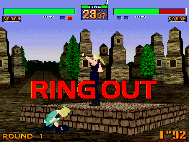 Unlike Time Traveler’s Dragon’s Lair hit-the-button-at-the-right-time thing, this sort of plays like an extra limited Virtua Fighter. The audio was wild, with the vocal samples glitching out and jumbled (“you win” would play mid match over and over) and everything else sounding like ancient arcade hardware beeps and bloops.