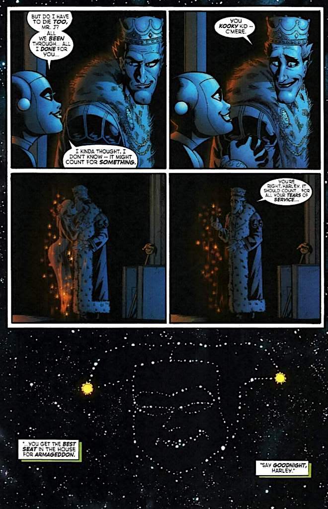 But while I feel you it made me think about this afterword-ish page from Emperor Joker (not really a great story but when not a chore, amusing for the what if / crossover biz). I’m just the occasional binge comic reader, and rarely with anything Marvel.
