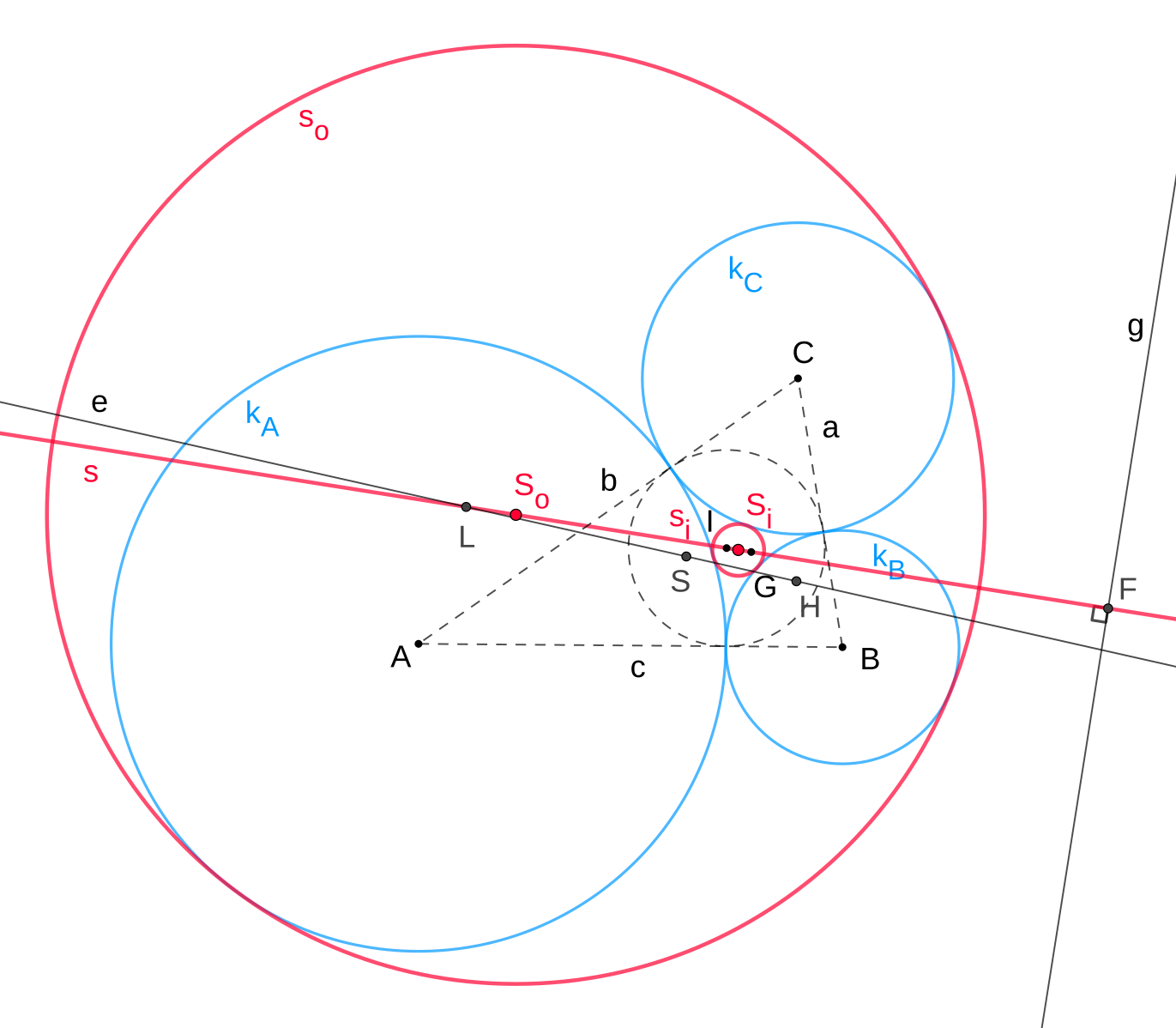 The Soddy line of a triangle is the line that goes through the centers of the two Soddy circles of that triangle.