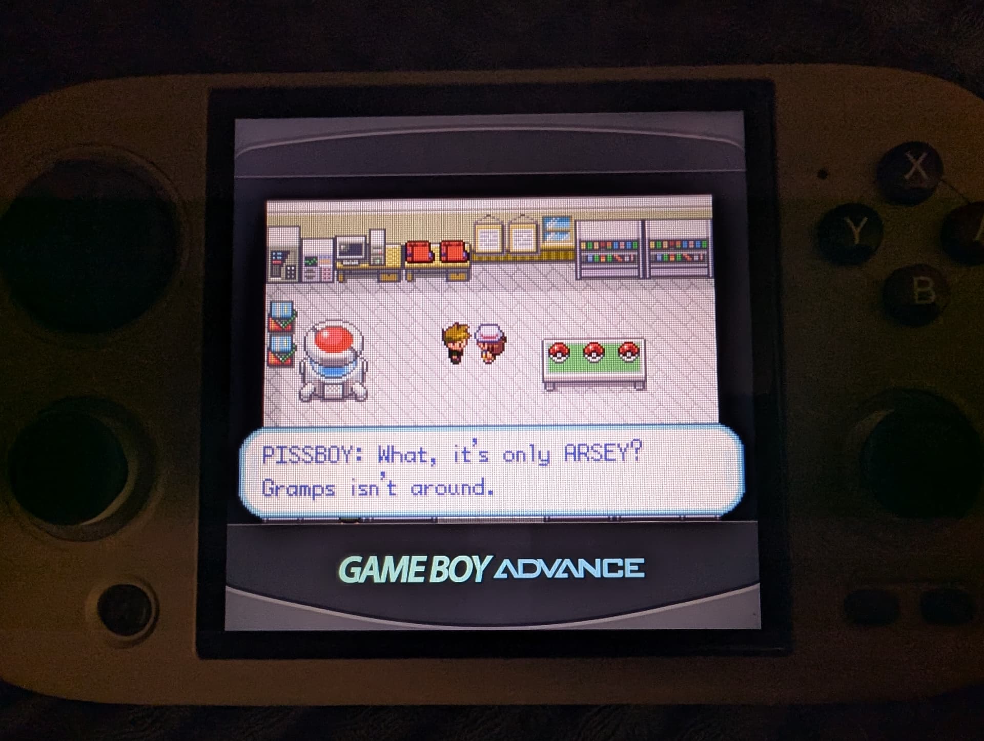 GBA is a little weird since it’s wider. MuOS defaults to slapping the entirety of the GBA screen to the top and putting a fat GBA logo down in the bottom. It looks…really bad, so I managed to hunt down some of the overlays that Anbernic uses in their stock firmware and moving the video a little to get this.