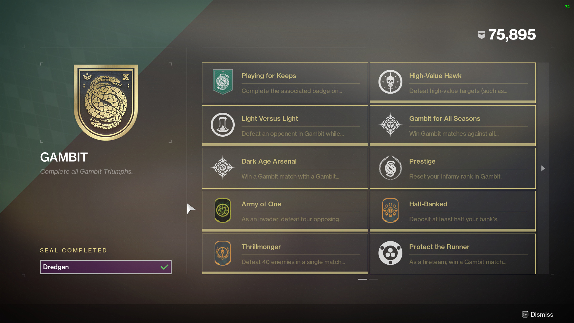 - Y1 activity ornaments (activities means: Strikes, Crucible, Iron Banner)