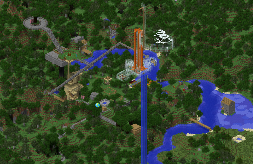 Live map: A google-maps like plugin for Minecraft! Courier: Write people letters while they’re offline! Healthbars: Enemies will show health bars when damaged! Slimefun: Use your experience to build things like rocketpacks! Portals: Make portals anywhere and link them together! Death Chests: Tired of losing your stuff in the wilderness? When you die, your stuff is saved, and you get a special compass pointing you back there! Live Mini Map: Get a map that shows your surroundings at all times! Choptree: Chop the bottom of a tree with an axe and the whole thing comes down!