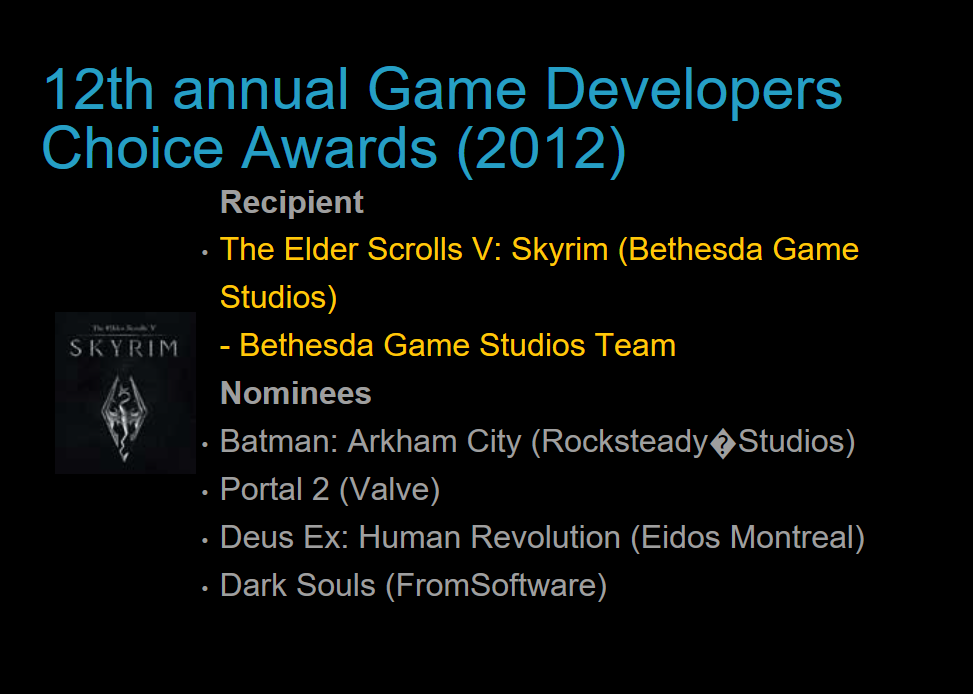 The funny thing is, a Japanese title like Sekiro would never win a Game Developers Choice award because western dev tastes are similar enough to western consumer tastes