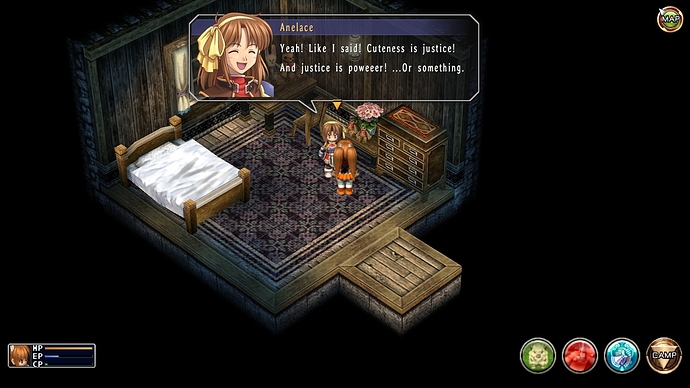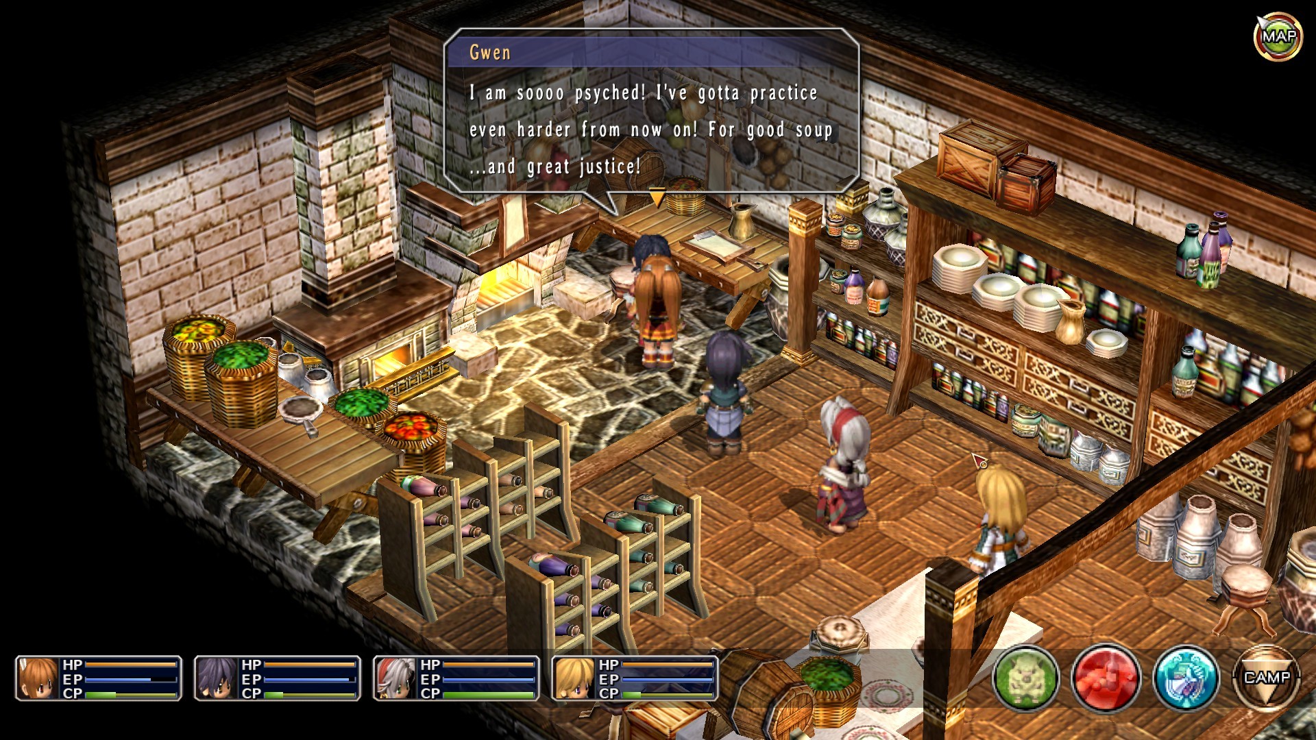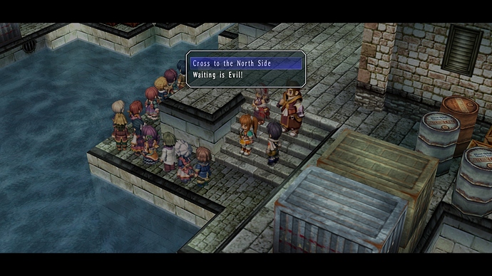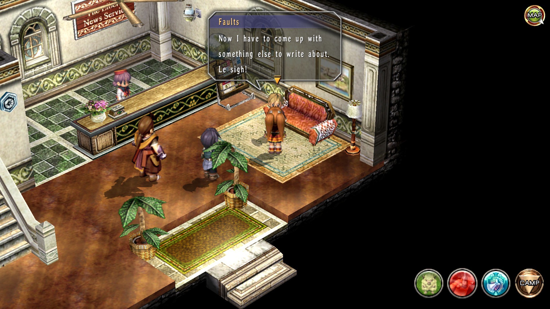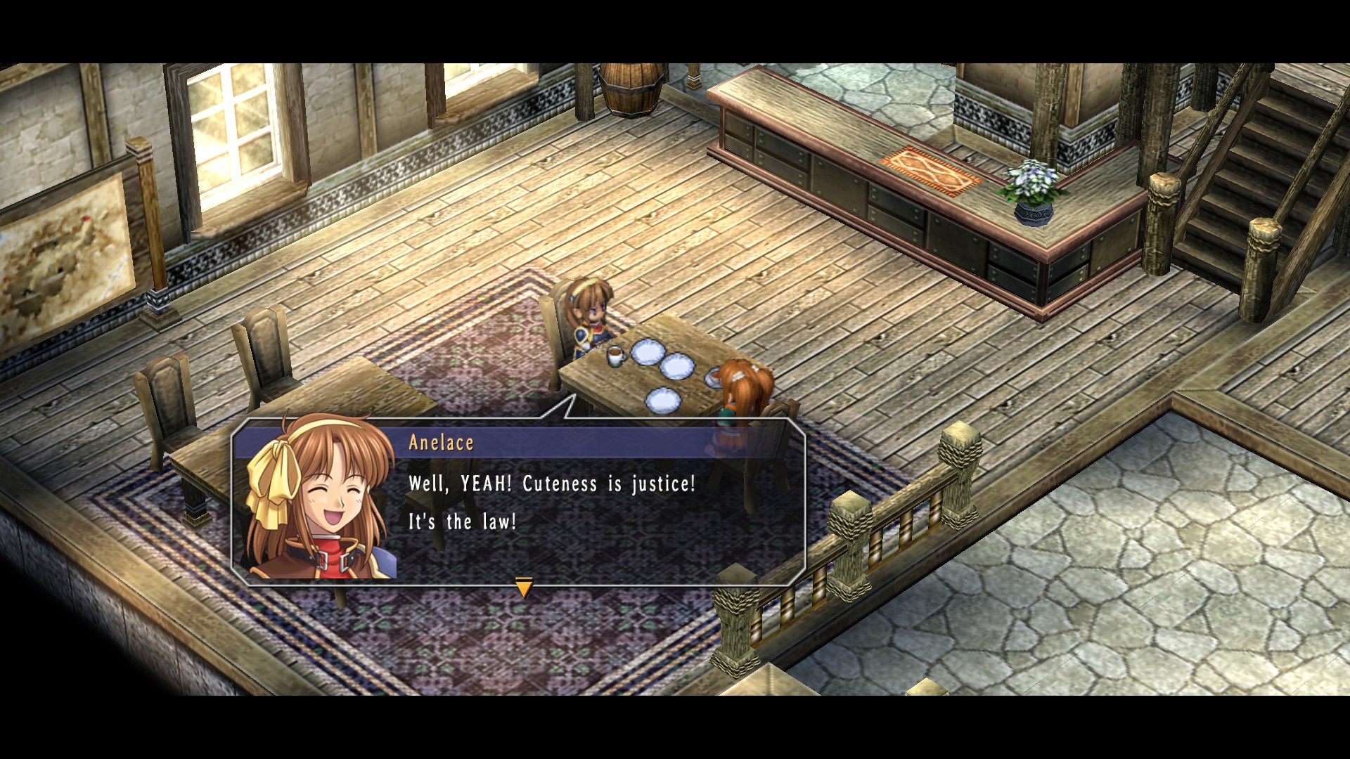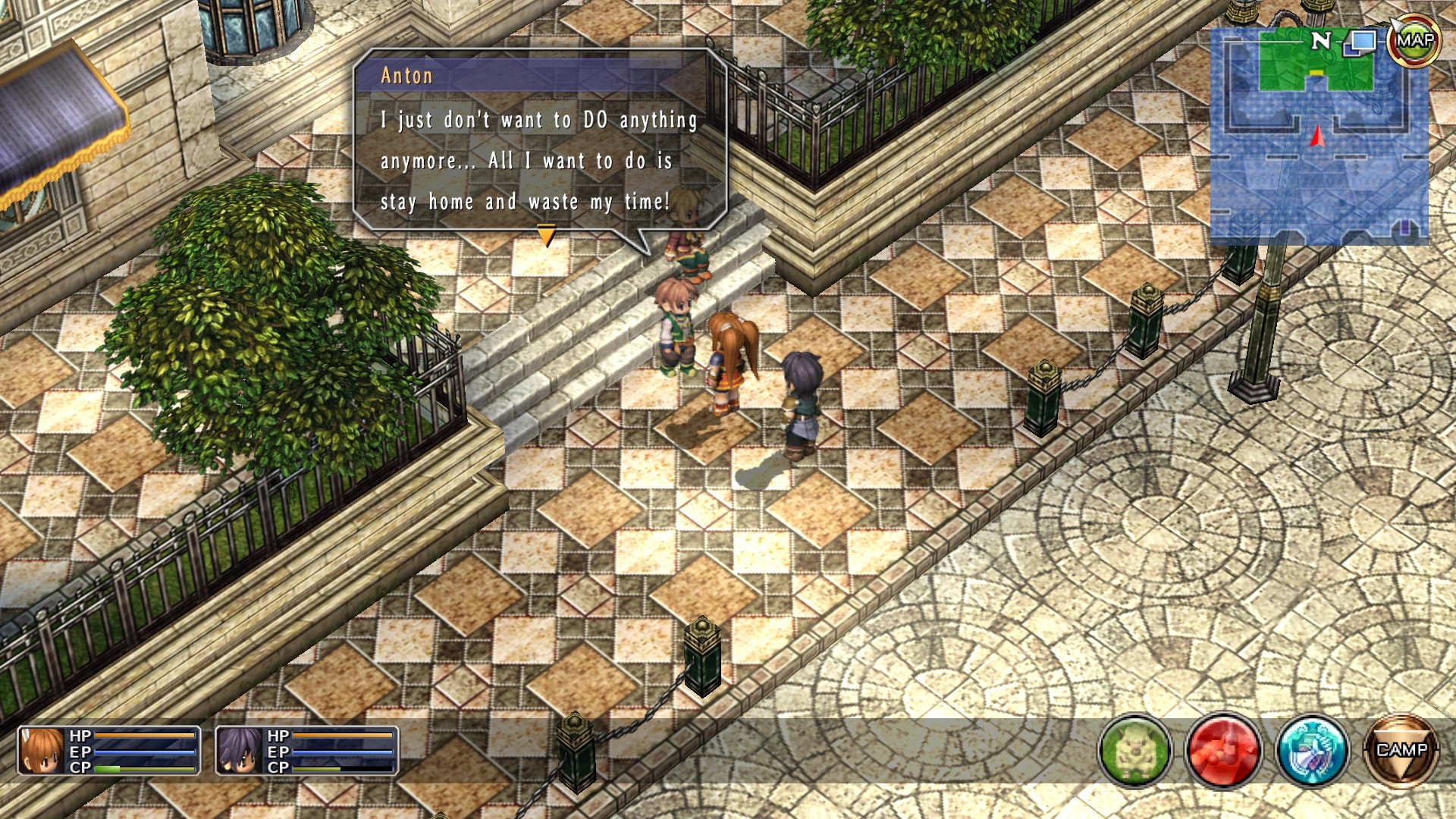 It is a series with a lot of fans because of that slow burn, because some people like that world building and these characters, and because there are some people who would play a JRPG even if it were just towns! Some people adore the Suikoden games, even though the battles are dead simple and can mostly be auto-attacked through. I am one of them! If you are someone who can enjoy the construction of a Suikoden or a Grandia without feeling like you are wasting your time, you might like to play more of this game. That is the standard it is attempting to achieve, and no higher. It’s not going to open up or change on you! It’s happy to simply pick it’s own pace and remain steady.