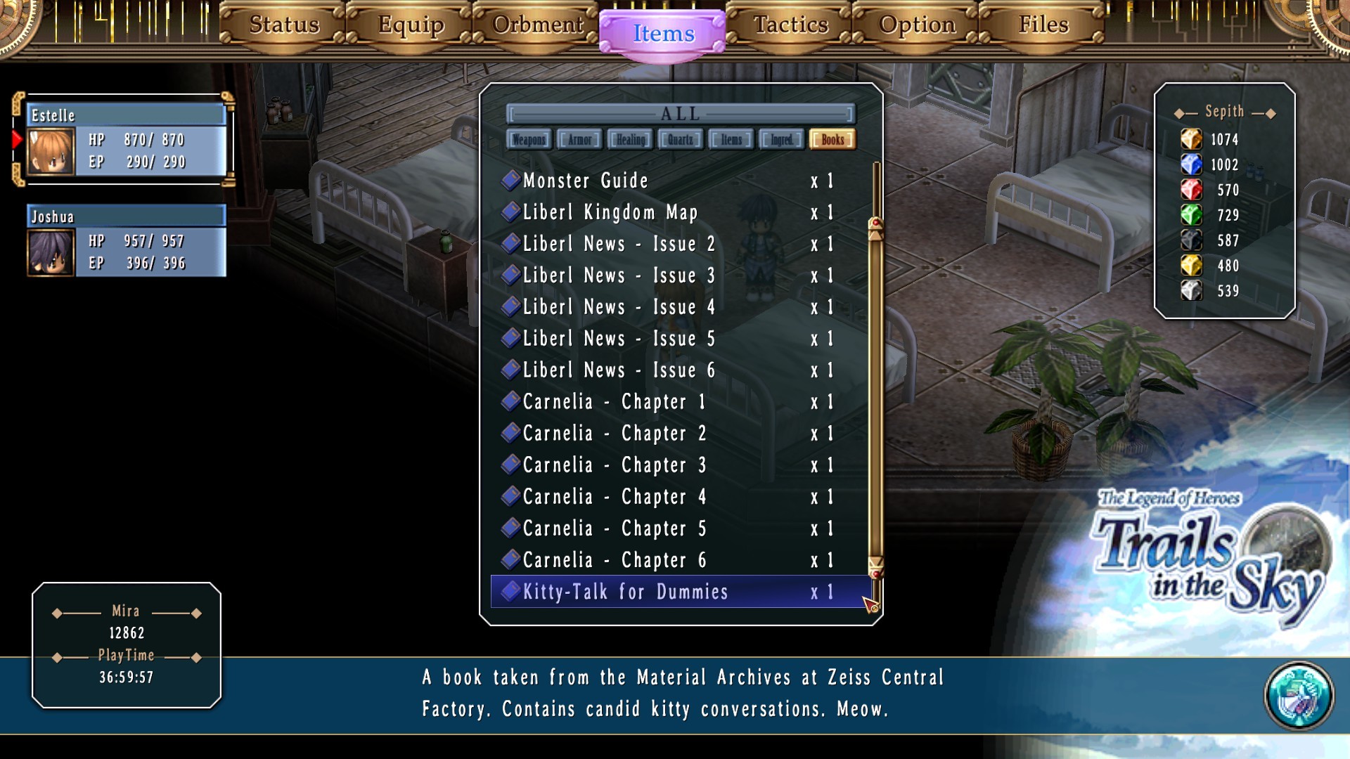 I am still sorting out my feelings on Trails in the Sky. I have complained about the game a lot on Discord (boy do they know), mostly about how the game rarely transcends typical JRPG tropes and writing, but in the end I still don’t feel any regret for playing it all and I don’t think “JRPG comfort food” is good enough of an excuse. But The Trails franchise as a whole is a crazily ambitious concept and I wonder if Falcom believes they will actually “complete” it. If they were to develop more entries at their current rate- which of course is impossible because this industry will change so much so quickly- it would probably take another 15 years for the Trails franchise to complete what it’s trying to do. But it’s great that there is a company that has the focus to attempt something like this.