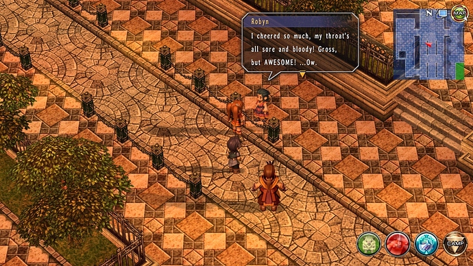 There is a lot of NPC dialogue in this game! It does a good job of keeping the town from feeling stale and the fact that your characters actually converse back to them makes things very lively but it takes a lot of time if you want to see that kind of stuff. But honestly so far the game probably fits into the comfort food area of games. The battle system is a little neat but it’s a '90s JRPG through and through with its writing and characterization; nothing particular stands out about it so far aside from the quantity of extraneous dialogue. I had always heard how amazing the narrative is but the internet is known to exaggerate at times; should I temper my expectations?