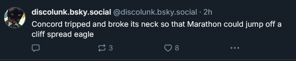 I know they are the current All Shooters Must Be This subgenre, but is there even a market for another extraction shooter? it’s like when everyone made a battle royale after fortnite (and PUBG, though that was even earlier) and all of them failed except apex. I guess they could be apex. game even fuckin looks like apex. but apex is free, who is paying for an extraction shooter who doesn’t already just play tarkov or hunt 18 hours a day? do they want to just shuffle their own players back and forth between this and destiny? are destiny and marathon published by different companies, I don’t even know anymore.