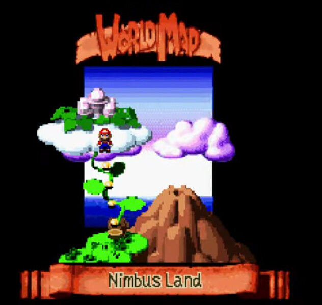 okay slight beef with the map. you have to perfectly press diagonal right to go to the volcano from nimbus land even though theres TWO places to go, one down and one right. WHY CANT I JUST PRESS RIGHT? YOU CANT MAKE ME USE THE JOYPAD. YOU CANT I WILL STUBBORNLY INPUT INCORRECTLY UNTIL I RANDOMLY DO IT RIGHT oh nevermind just as i was complaining this i decided to go back and forth a few times and its really easy now that i know its requiring a diagonal input. its still weird. right would have worked just fine