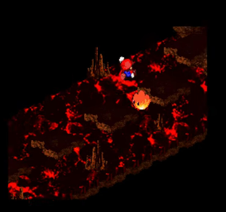the lava everywhere DOES look great, but the areas with tons of lava dont feel as dangerous and getting-close-to-the end as they do in the snes version. i remember like the darkness contrasted with nimbus land made it feel like you went to fucking norfair, just straight to hell.
