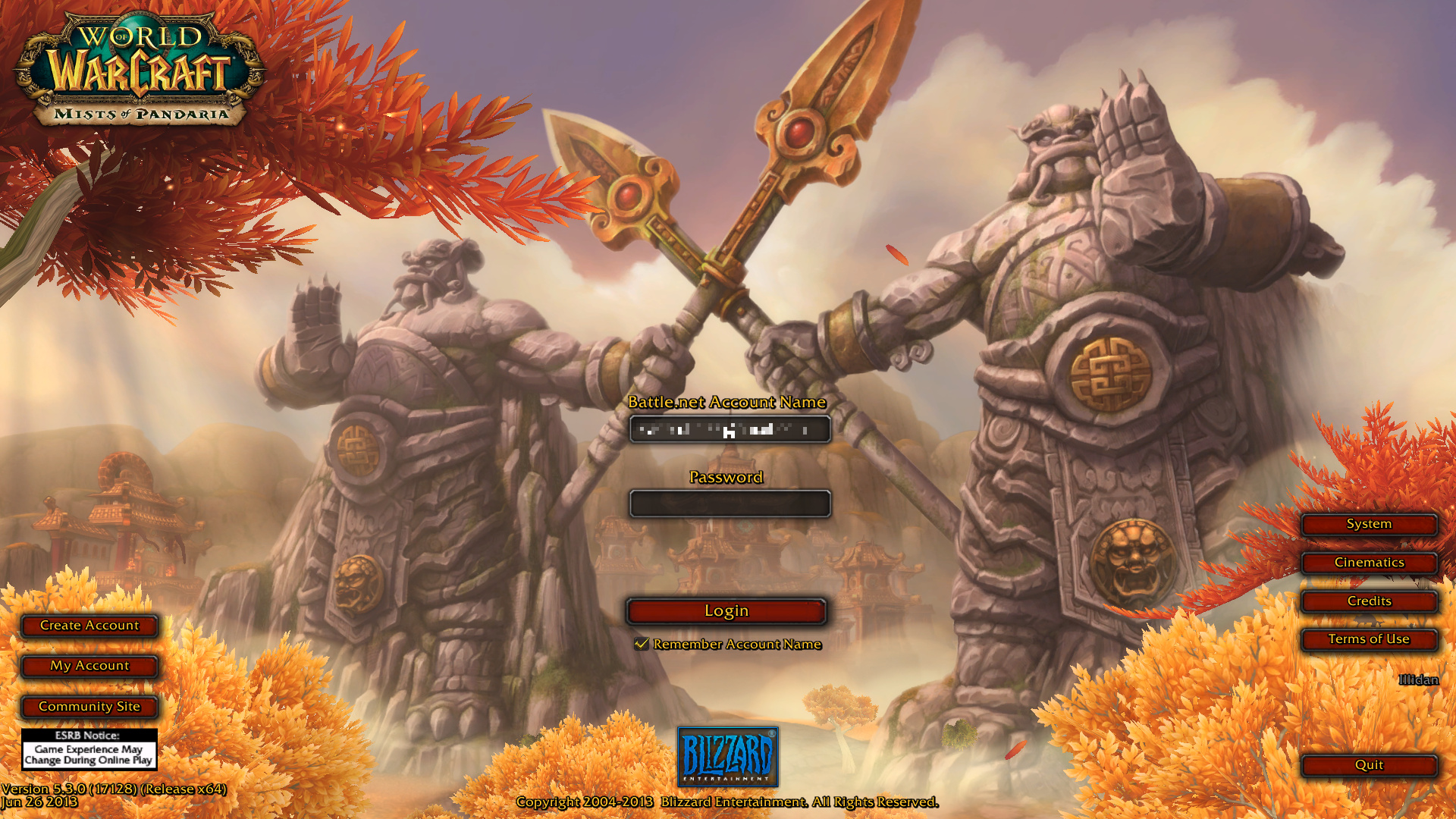 many good World of Warcraft menus, so much real-estate granted to a beautiful image with very little actual menu buttons to pay attention to. now adays I think you just zoom past these things anyway with autologin through the blizzard client.