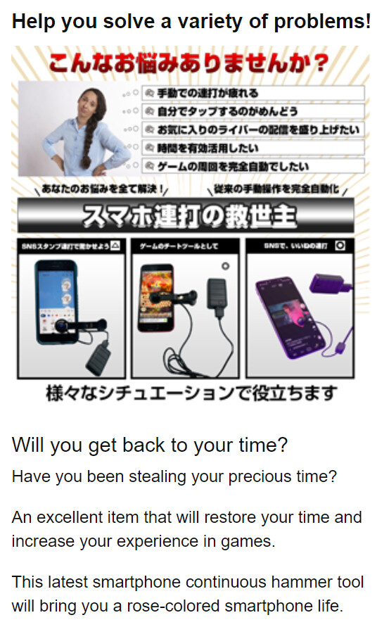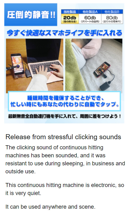 It is weird though that they’re selling this with pics of some consumer using it for games. Of course they can’t show someone using it in a clickfarm, but still! I can’t imagine a game which needs constant tapping.