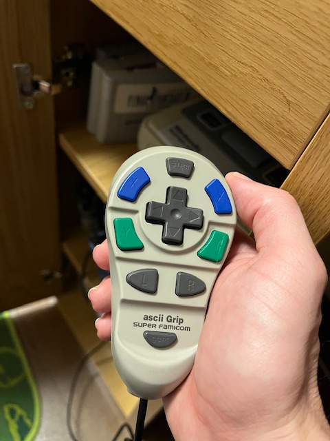 With my Wii Related Wrist Injury Iād thought Iād finally use this ASCii One Handed SFC controller.