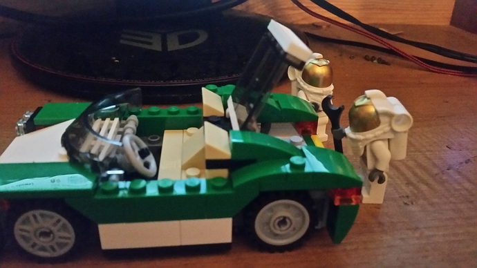 Vintage Lego tractor displayed with modern Lego bricks