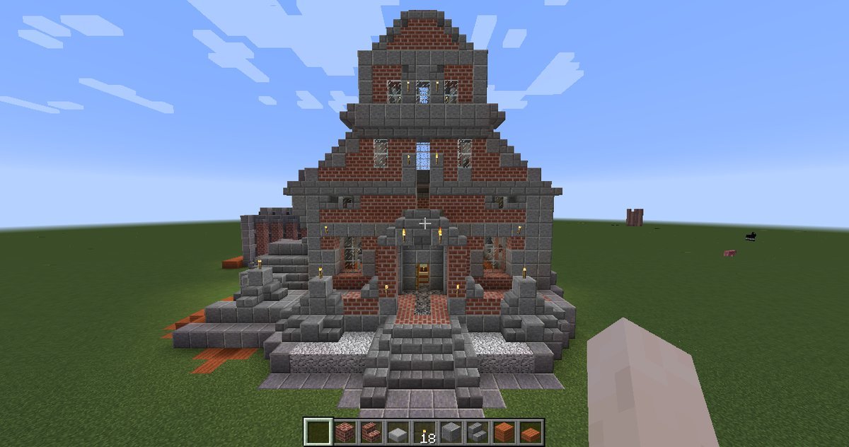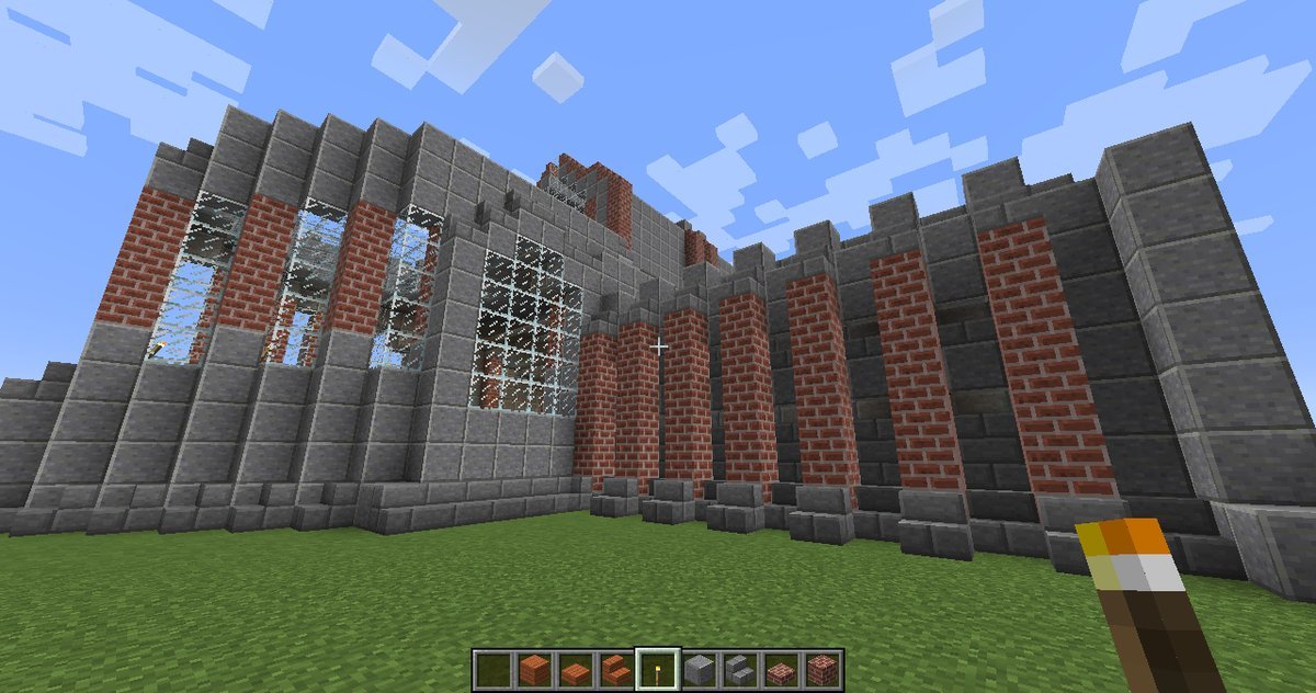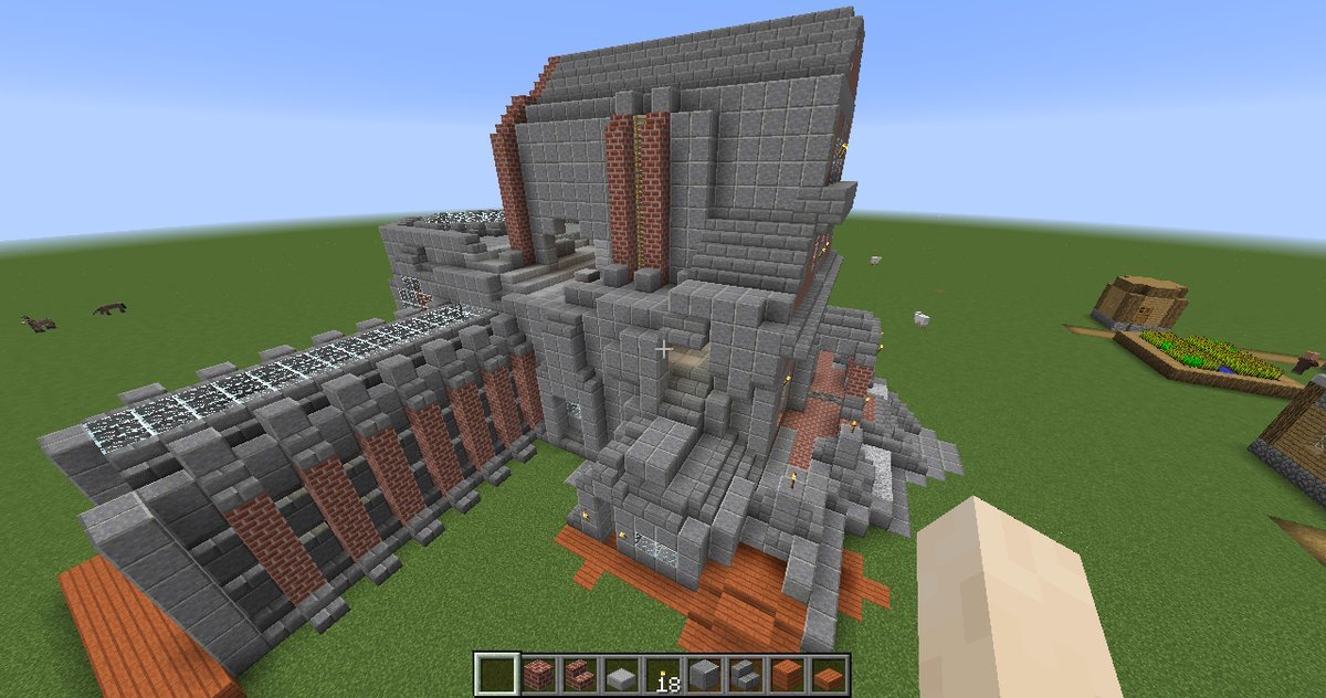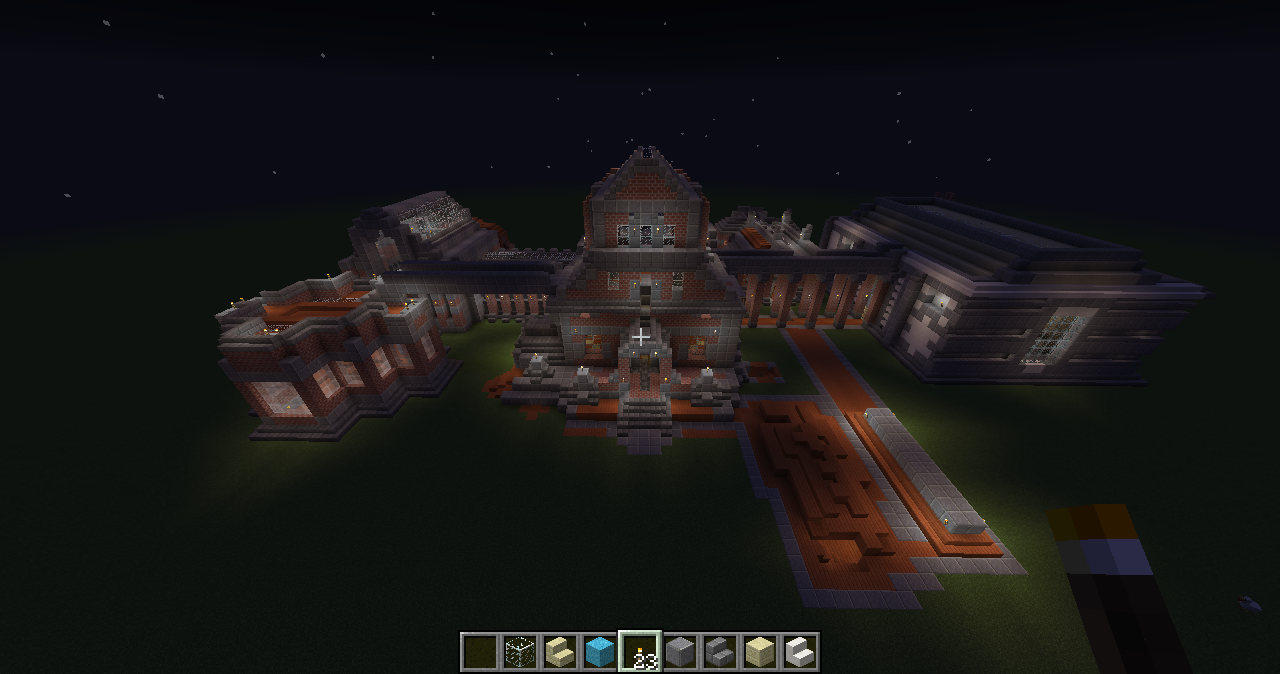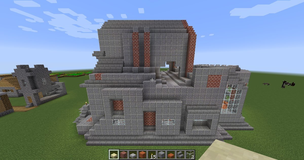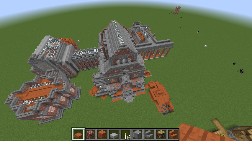 I’ve been putting up a building this week. It’s part residential/part playground, with the more organically developed and less symmetrical parts resembling some modernist styles. The main facade is just a sort of crow-stepped gabled European type. I’ve tried to keep most of the building vaguely structurally justifiable, at least if you can pretend that the cantilevered parts depend upon industrial methods and hidden supportive units.