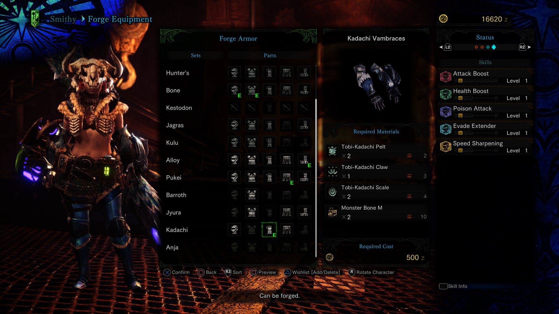 Went fishing around the Japanese MHW wikis for good low rank mixed armor sets and settled on this one (bottoms are personal preference); just finished building it thanks to Booji’s help. I’m using the Pukei-Pukei insect glaive with poison element, so complementing it with Poison Attack skill on the flex slot made sense.
