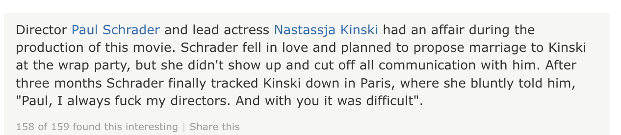 Yeah the other reason I want to see this is that anyone who survived having Klaus Kinski as a dad deserves my attention. I still gotta see Paris, Texas!