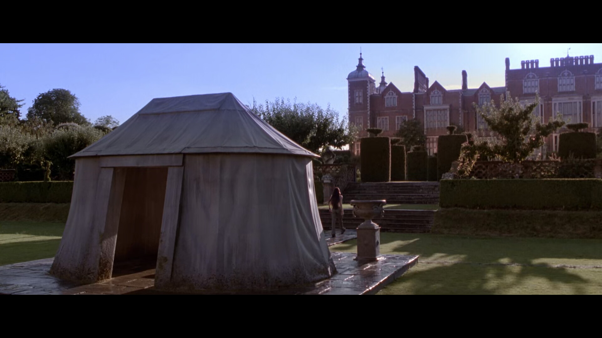 Lara Croft’s missing in action archaeologist dad has a marble mausoleum on the family property that’s in the shape of a adventurer’s tent.