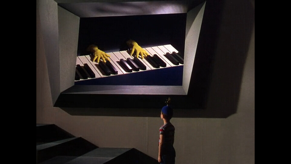 watched The 5000 Fingers Of Dr T. have never been that big on elaborate stage sets but something about the goofily menacing parody expressionism of these really got through to me - i think it’s the way the cartoonish elements are offset with a degree of blank emptiness which makes them more mysterious and threatening. maybe it’s obvious but i had not realised the extent to which the neverhood was indebted to dr seuss until now!! the creepy hand motif is also a lot of fun.