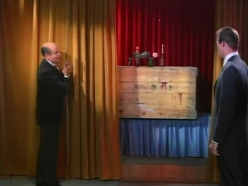 there are some comical hijinx where the snooty undertaker slips on a skateboard or something and then he goes back to chopping up women with basic and horrible gore effects that suddenly cut away after a second to show where i guess the censors took a whack at it. the ending is surprisingly compelling - the guy who seemed like the main character is hastily blown to pieces offscreen, and the undertaker starts stalking secretary #3 through the building - it plays comical Perils Of Pauline piano music when she’s running, and cartoonish plodding organ sounds when he follows, and then goes back and forth over and over again until it really does feel like some horrible unresolvable dream situation. the credits show all the different murder victims resurrecting to give the camera sassy winks.