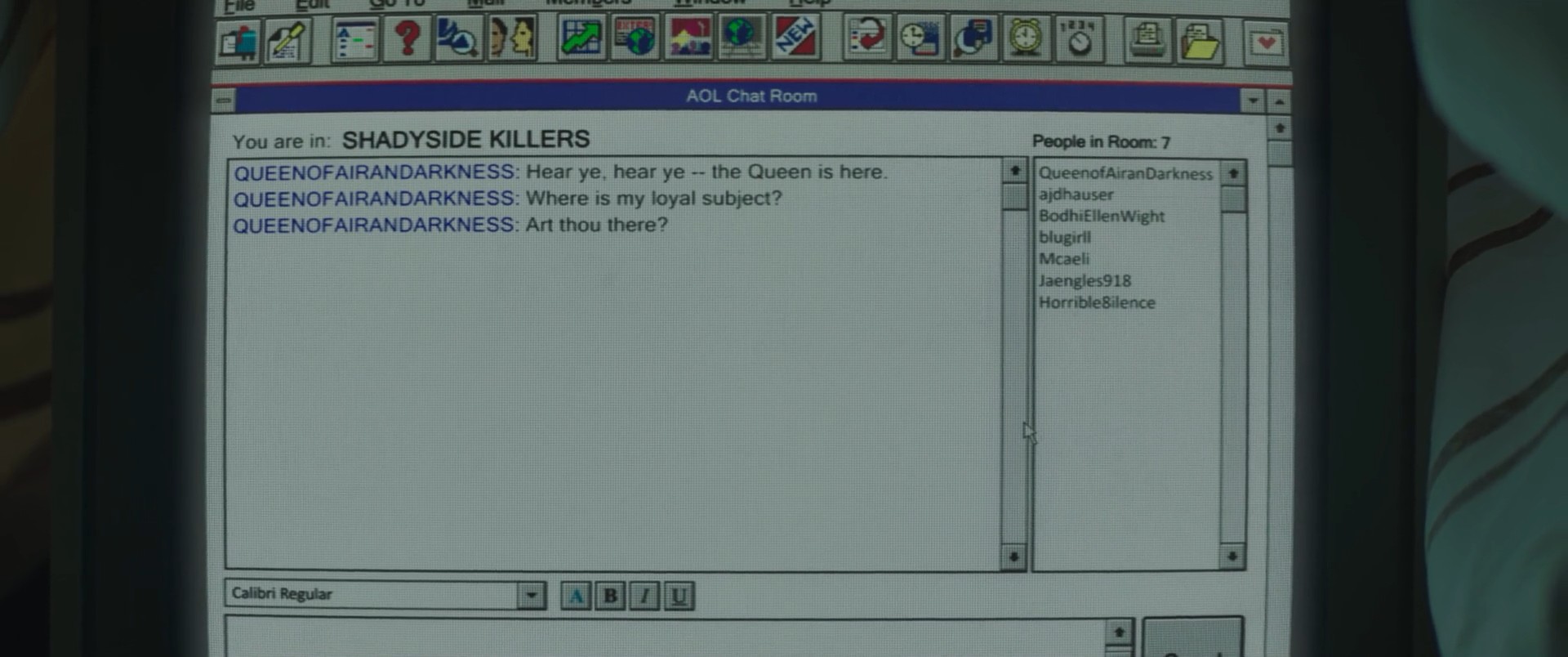 This [Fear Street 1994] is supposed to take place in 1994, but Calibri wouldnât exist for another 13 years (2007). You wouldnât start seeing it until Vista, I want to say. This kid wouldâve been using like, Windows 3.x, and 3.1 debuted with Times New Roman (Serif), Arial (Sans), and Courier (Mono), so he probably shouldâve been using Arial. People always really seem to fuck up type when it comes to this nostalgia shit.