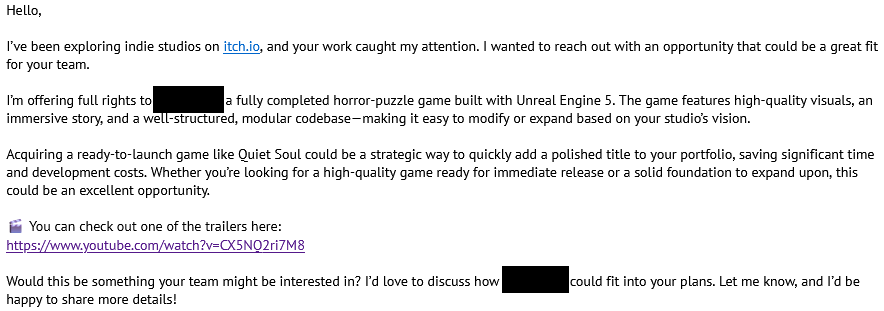 this happened to me on a game that i did some music for for someone who i was at least somewhat friendly with. and the dev continually promised so much shit, then the demo with the music i did in it actually won an award. and then yeah after two years of lots of promises from them they abruptly kicked me off the thing with no warning once they solidified a publisher and basically told no hard feelings like they hadnât spent the last two years making big promises. that was kind of it for me trying to do music for any bigger indie project.