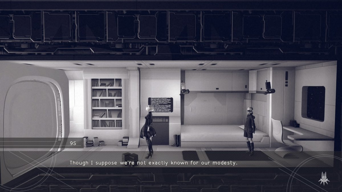 Really appreciate the amount of sass in the writing, not having seen any big Plot Stuff yet (disobeying anything 9S tells you to do and seeing how the writers handled the pushback was pretty amazing)